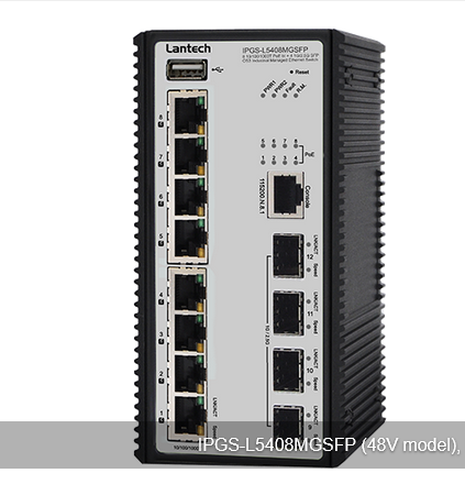 LANTECH I(P)GS-L5408MGSFP-48V-E:8 10/100/1000T + 4 1G/2.5G SFP w/8 PoE 802.3 af/at OS3 Managed Ethernet Switch