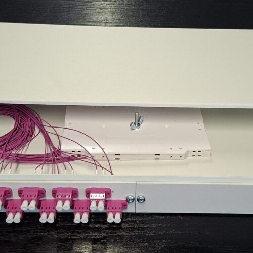 Fiber Optic Patch Panel 19″ 1U with 24 duplex adaptors LC 50/125 OM4, drawer type metal