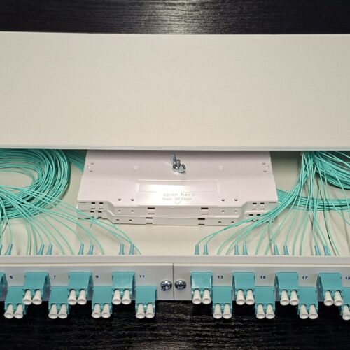 Fiber Optic Patch Panel 19″ 1U with 24 duplex adaptors LC 50/125 OM3, drawer type metal
