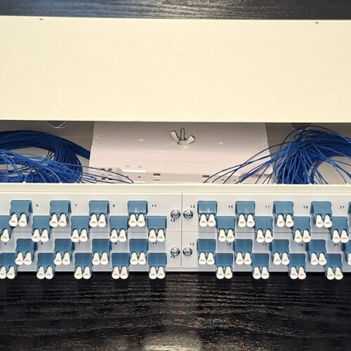 Fiber Optic Patch Panel 19″ 2U with 48 duplex adaptors LC 9/125, drawer type metal
