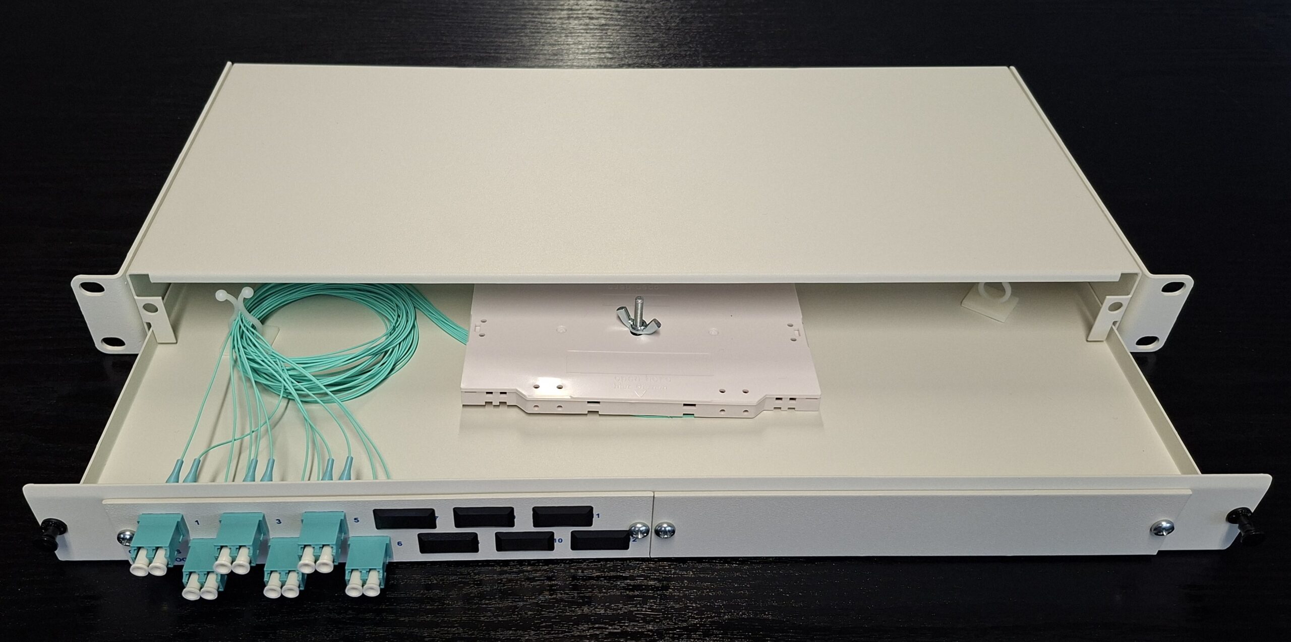 Fiber Optic Patch Panel 19″ 1U with 6 duplex adaptors LC 50/125 OM3, drawer type metal