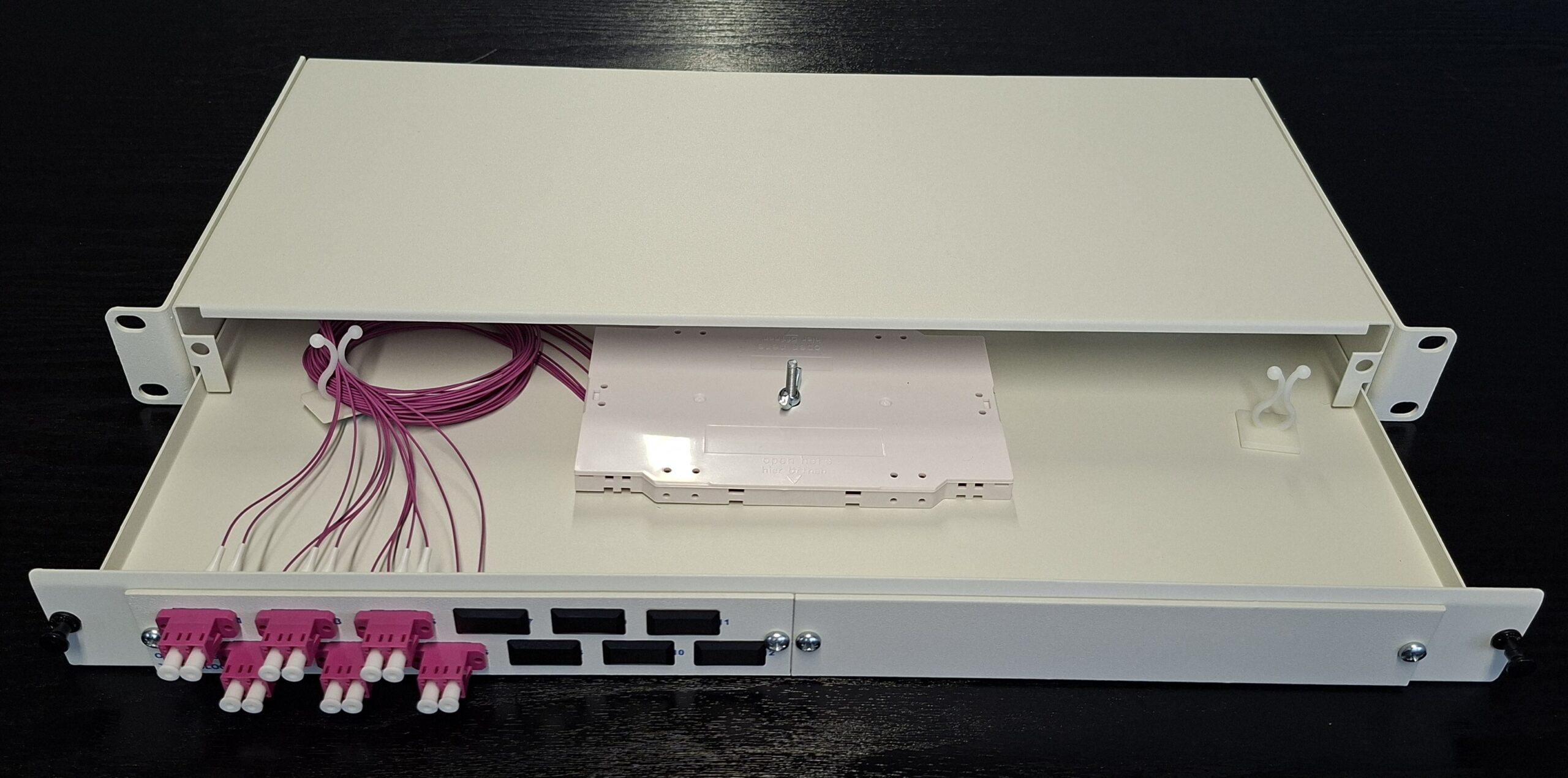 Fiber Optic Patch Panel 19″ 1U with 6 duplex adaptors LC 50/125 OM4, drawer type metal