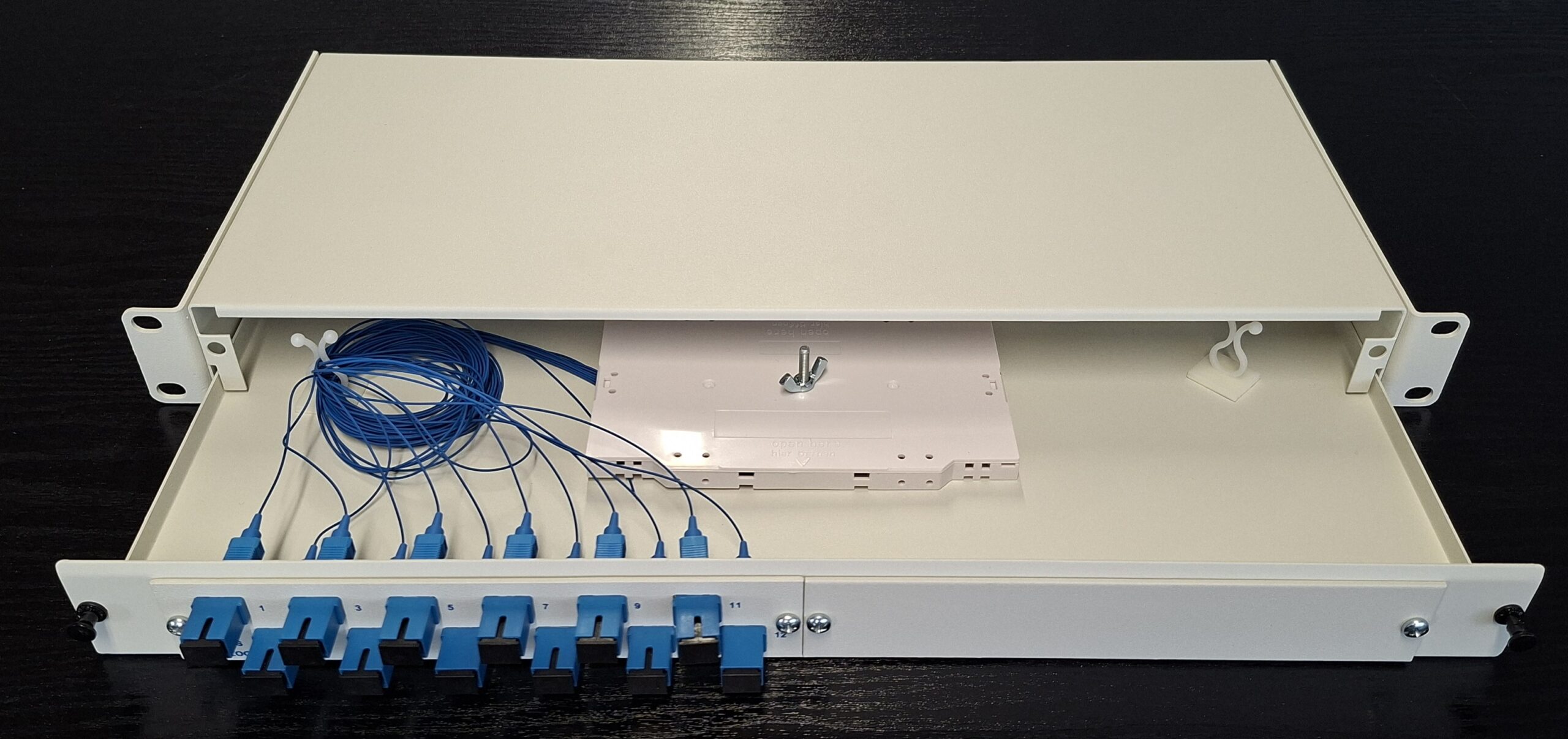 Fiber Optic Patch Panel 19″ 1U with 12 adaptors SC 9/125, drawer type metal