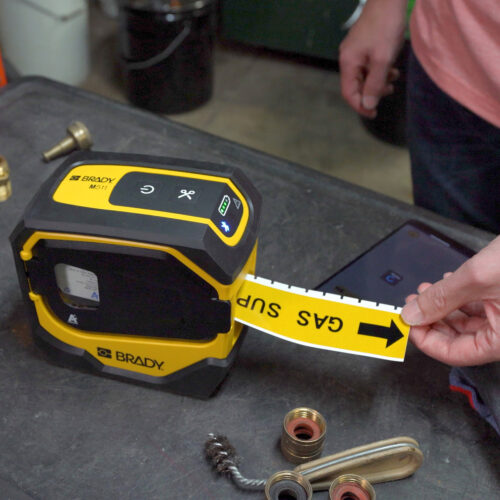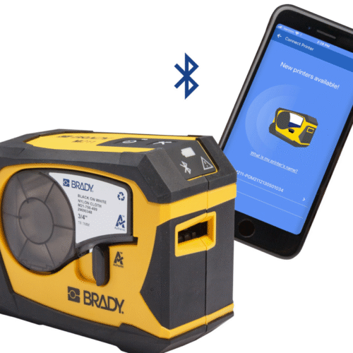 BRADY’s newest mobile labeling printer for large quantities of labels and different materials. Printing labels up to 38.5mm wide. Connection to a computer for printing from ready-made texts and via mobile for easy handling in the project.
